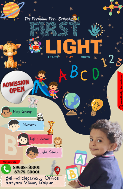 First Light Premium School is a leading preschool in Raipur, providing high-quality early childhood education for children. Our mission is to create a positive and engaging learning environment where children can develop their full potential and become lifelong learners.