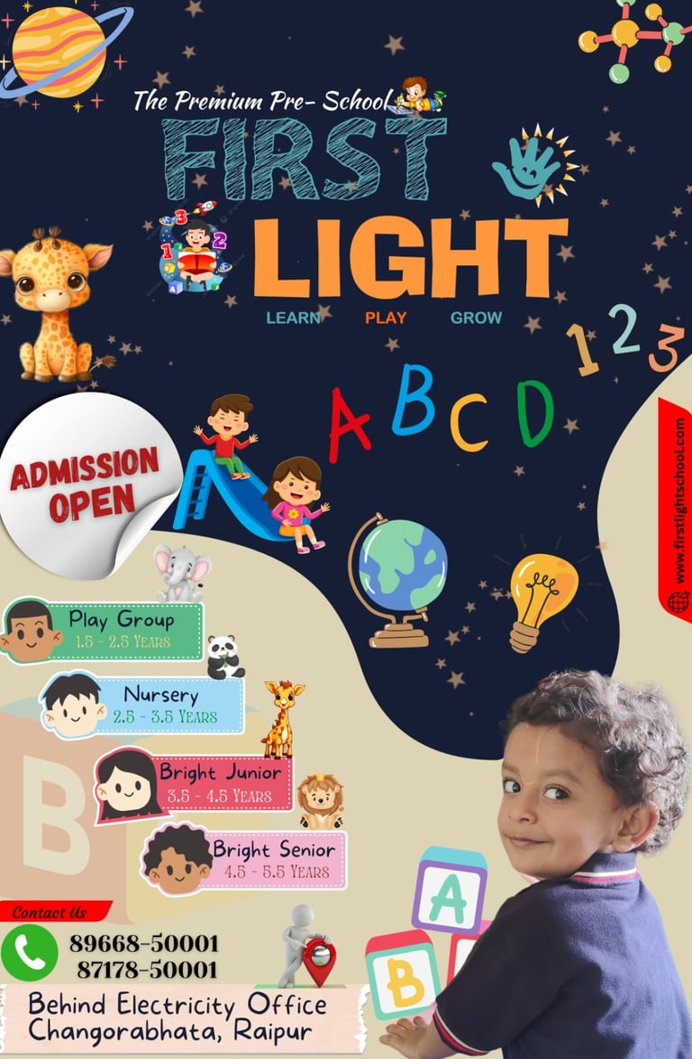 First Light Premium School is a leading preschool in Raipur, providing high-quality early childhood education for children. Our mission is to create a positive and engaging learning environment where children can develop their full potential and become lifelong learners.