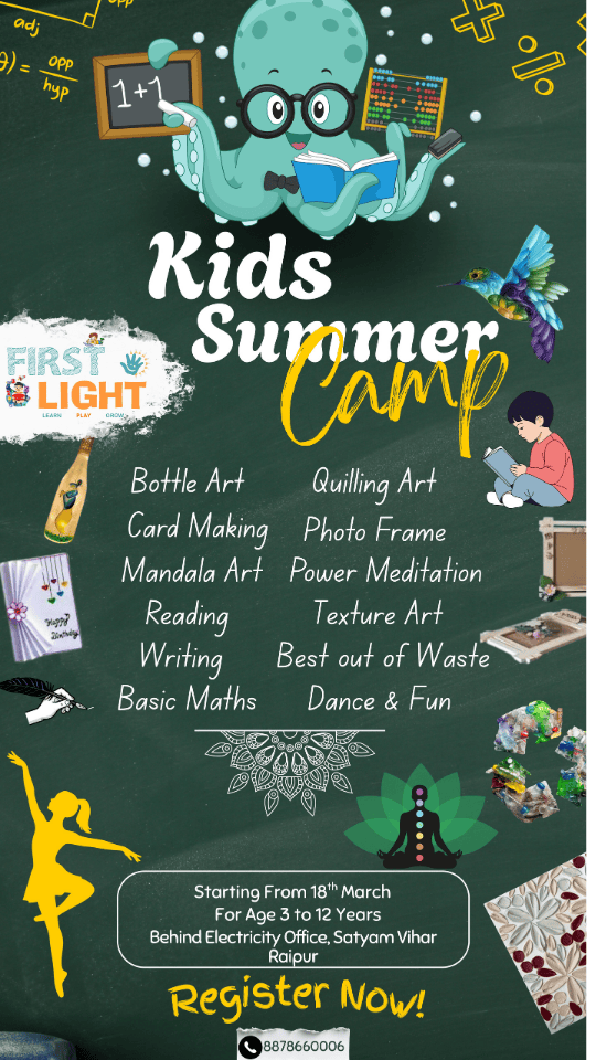 "First Light Premium Pre School is a leading preschool in Raipur, Chhattisgarh, that offers a holistic and nurturing environment for your child's early education. The preschool follows an integrated curriculum that combines Montessori, Playway, and Multiple Intelligence methodologies to foster the physical, cognitive, social, and emotional development of your child. The preschool has well-equipped classrooms, indoor and outdoor activity areas, CCTV cameras and trained staff to ensure the safety and comfort of your child. First Light Premium Pre School also provides weekend childcare, emergency services, and activity classes for your child's convenience and enrichment. Enroll your child today and give them the best start in life at First Light"